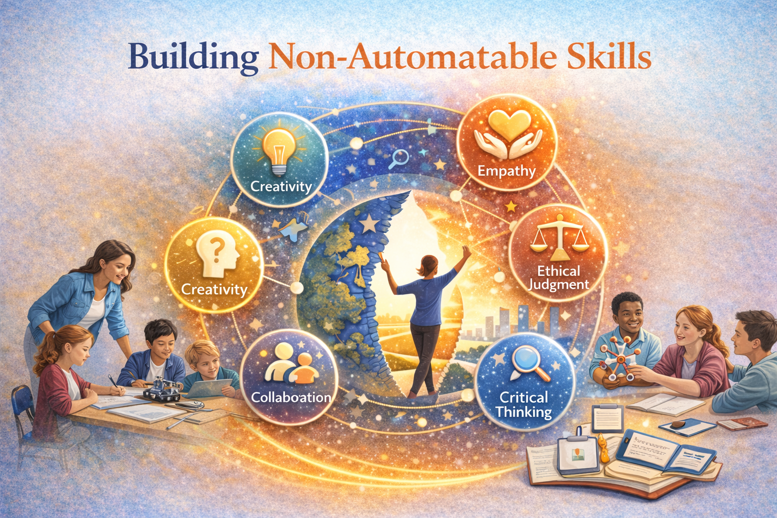 Non-automatable skills—such as critical thinking, creativity, collaboration, empathy, and ethical judgement—develop best through how learning happens, not just what is taught.