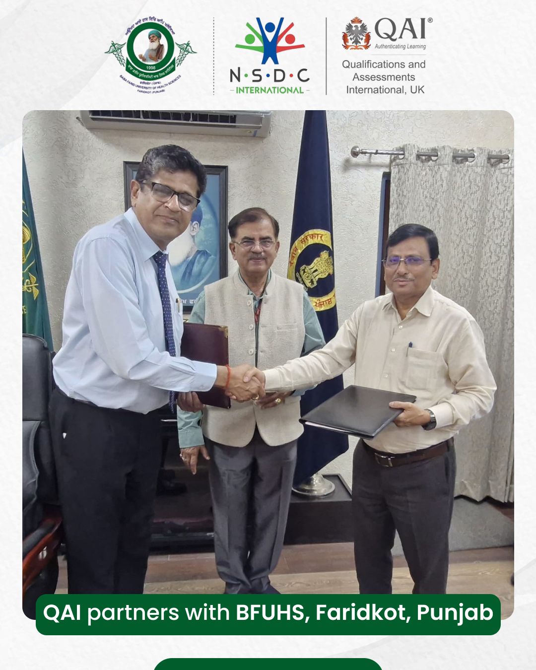 QAI has partnered with Baba Farid University of Health Sciences, Faridkot, to offer the globally recognised QAI Level 4 International Diploma in Caregiving. The programme equips learners with industry-ready skills, provides international certification, and enhances global career prospects.
